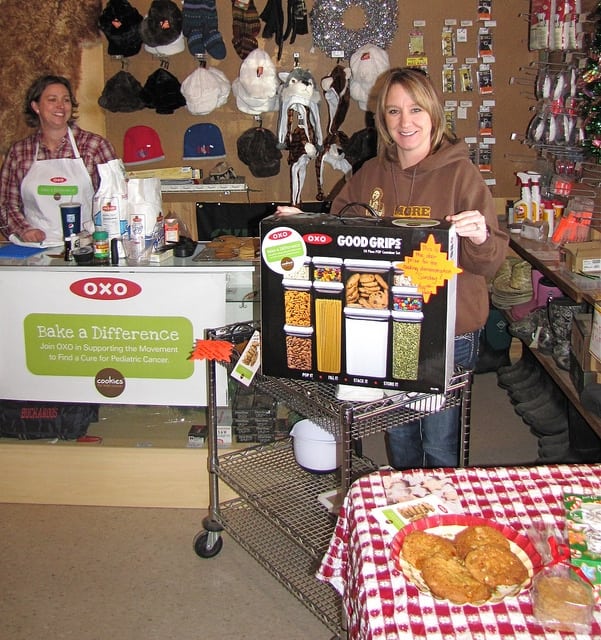 I wanted to do a little more for the Cookies for Kids’ Cancer charity, so I joined forces with OXO (you know how I love OXO!) and hosted a cookie demonstration and bake sale at the Kaycee General Store (my sister-in-law’s local grocery store).